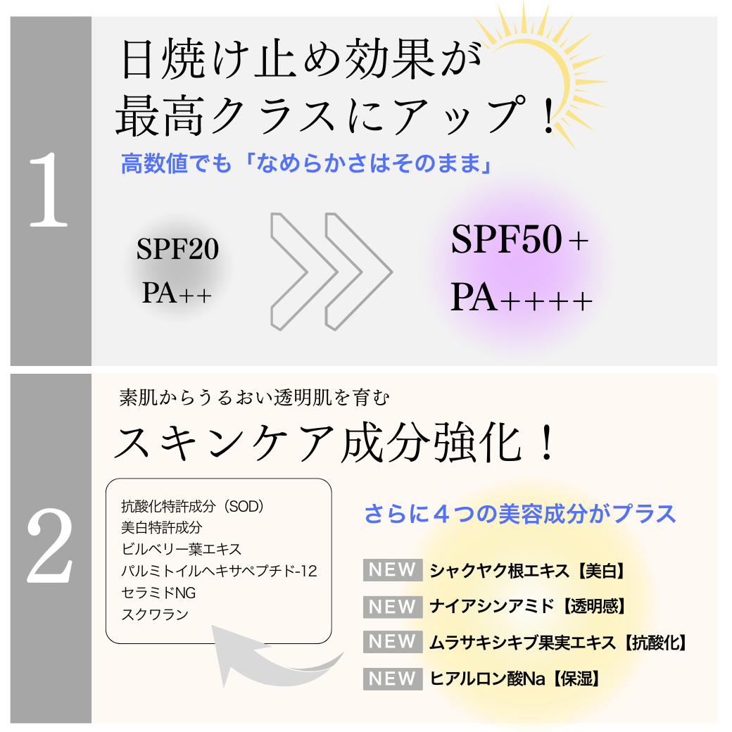 日焼け止め効果が大幅にアップし、スキンケア成分も追加配合!